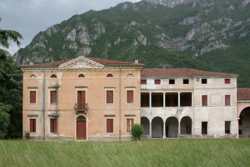 - Descrizione: Stemma nobiliare che decora il timpano della facciata della villa.