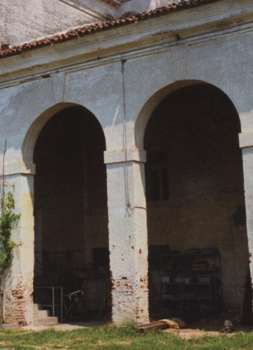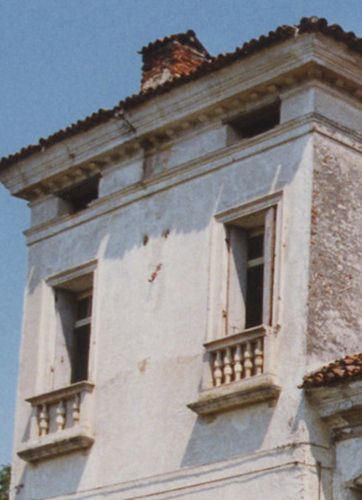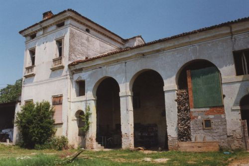 Il complesso sorge in posizione isolata, poco lontano dal centro del paese. E' frutto di un progetto non finito, ed è articolato nell'edificio padronale con fronte tripartito su due livelli e nella barchessa a est che è caratterizzata dal ritmo degli archi.Specifiche: