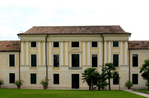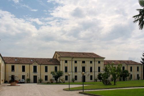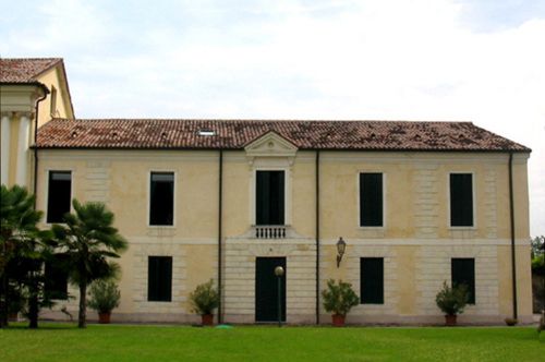 Il complesso che sorge verso la statale che attraverso il centro abitato, è composto dal corpo della casa padronale con la corte delimitata da una lunga barchessa che si innesta su uno dei lati della villa, a sud vi è un vasto parco e un oratorio.Specifiche: