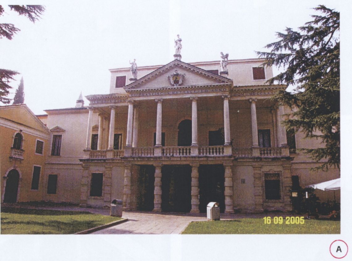 - Descrizione: Numerose slanciate colonne ioniche su piedistalli definiscono la loggia al primo piano, articolata in un settore centrale più sporgente a quattro intercolumni, affiancato da settori laterali simmetrici di ampiezza dimezzata.