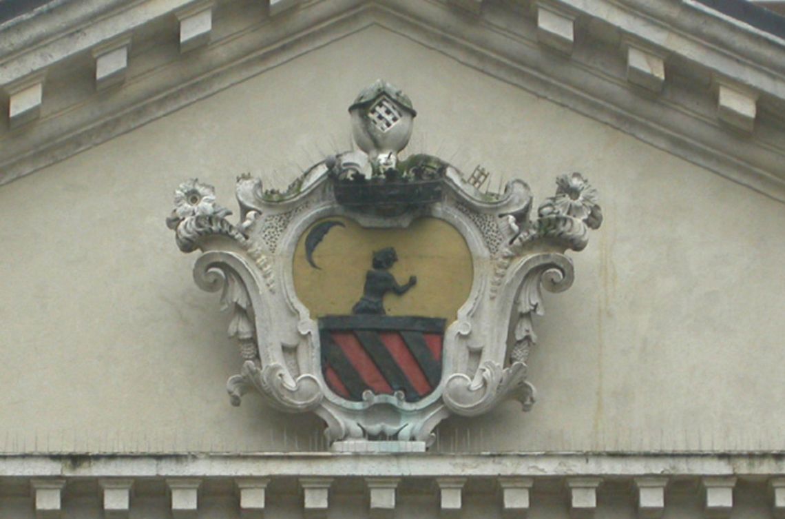 - Descrizione: Grande stemma a cartiglio della famiglia Mattarello al centro del frontone.