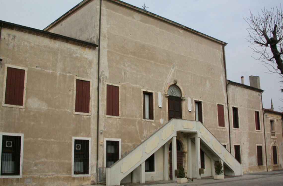 - Osservazioni: A pianta rettangolare articolata, si eleva su due piani e sottotetto. Il fronte principale, rivolto a nord, è fortemente connotato da un pronao timpanato, formato da portico e loggia sovrapposti e articolato in tre settori di diversa profondità. Al piano terra, lesene e colonne doriche fasciate a bugne reggono la trabeazione; al primo piano, colonne ioniche su piedistalli ed interposta balaustra sostengono una trabeazione con il fregio campito da un'iscrizione e cornice a dentelli; alto attico al di sopra del corpo centrale, frutto di un intervento di inizio Novecento.