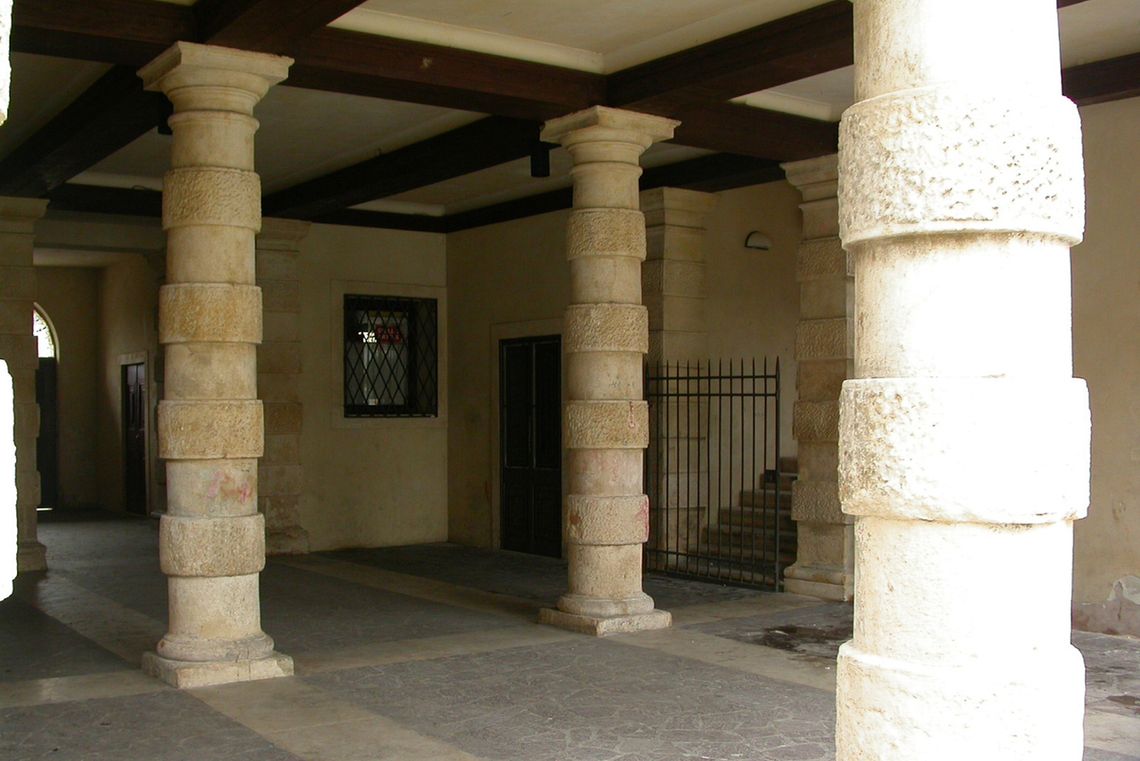- Descrizione: Quattro colonne fasciate da bugne alterne, più due libere all'interno dell'atrio, si distribuiscono al centro del piano terra e continuano ai lati in lesene doriche fasciate allo stesso modo.