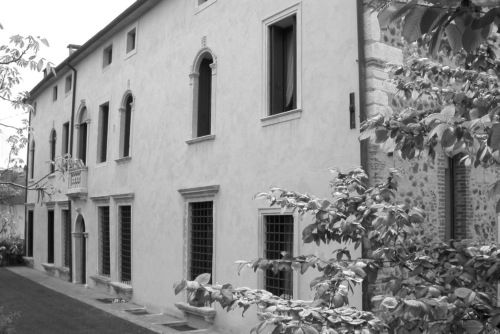 - Descrizione: Al primo piano, quattro monofore a doppia ghiera, decorate a baccelli, ovuli e lancette e coronate in chiave e al piano d'imposta da palmette.