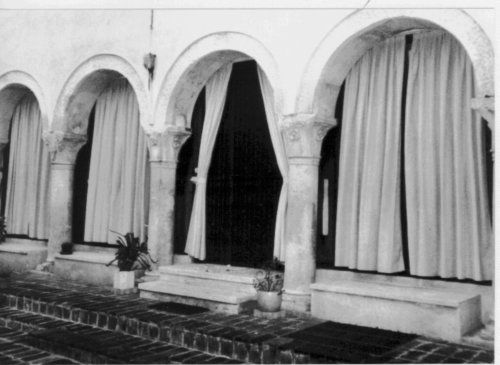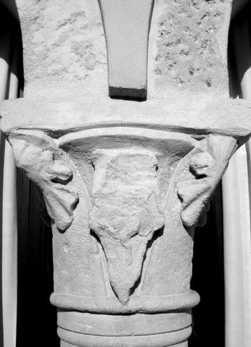 - Descrizione: Prospetto sud, tozze colonne con capitelli a motivi floreali e araldici.