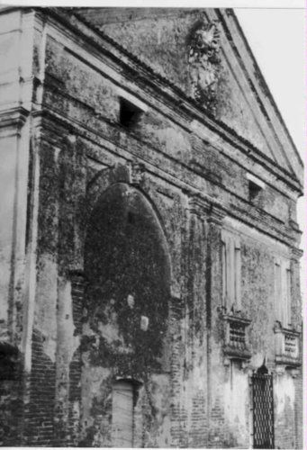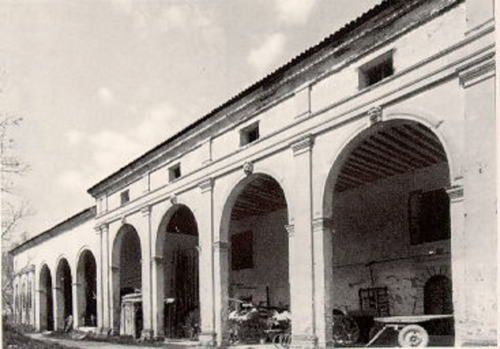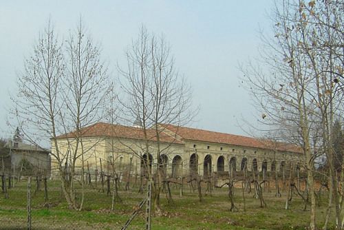 - Descrizione: Tre nicchie con cornice bugnata, riquadrate da sottili lesene reggenti una trabeazione modanata, concludono il volume più basso addossato alla testata sud-ovest della barchessa nord-occidentale.