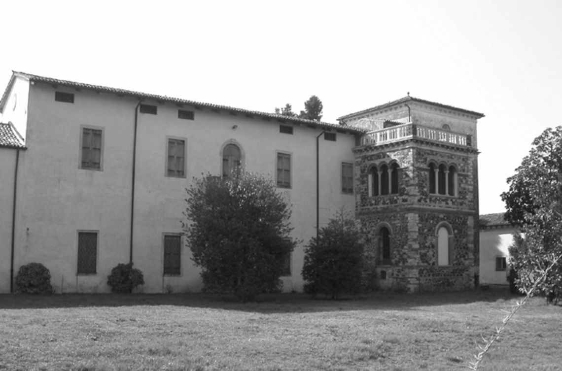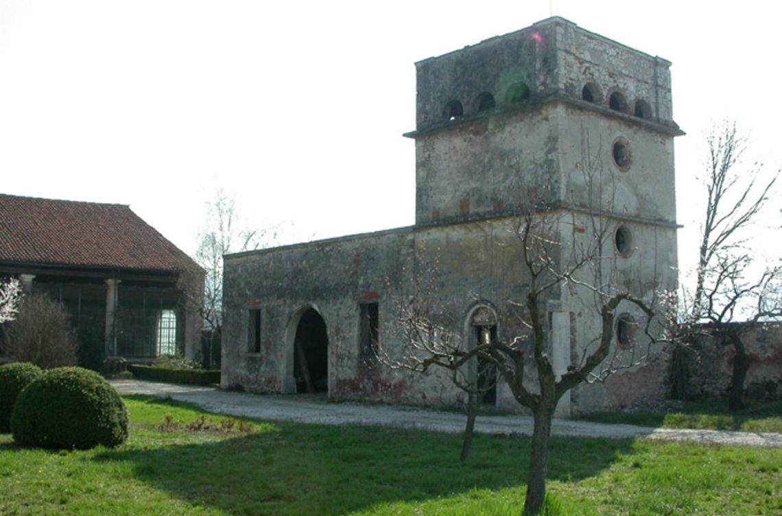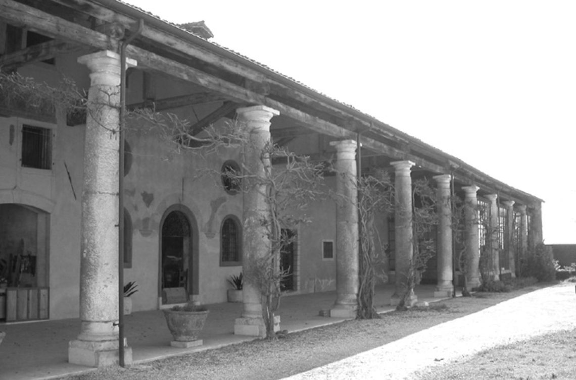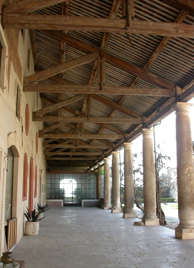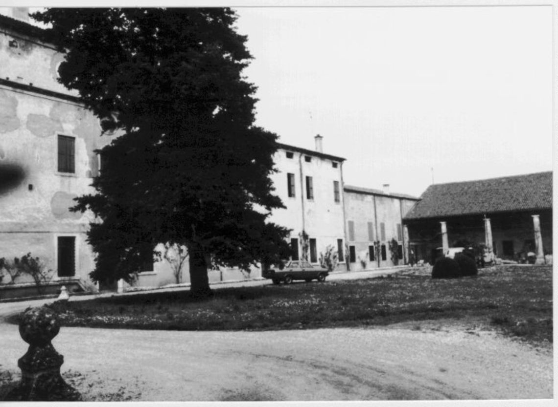 - Osservazioni: Imponente barchessa con portico architravato su dieci colonne tuscaniche, il cui fusto è a rocchi di pietra grezza, mentre basi e capitelli sono lavorati. Nell'ampio e suggestivo spazio del sottoportico, con struttura di copertura a capriate lignee, da segnalare una porta bugnata con testa umana in chiave d'arco e lacerti di affresco.