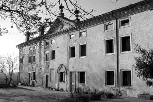- Osservazioni: Il volume a pianta rettangolare si eleva su due piani più un basso sottotetto ed è concluso da una lunga cornice a fitti dentelli. La facciata rivolta a sud, seppure pesantemente manomessa, appare connotata da un timpano sommitale con stemma nobiliare e vasi acroteriali, che individua il settore centrale. La parete sottostante presenta una tessitura disomogenea, sia negli intonaci che nelle aperture, con aperture architravate e organizzate in assi verticali, ad eccezione del portale d'ingresso, dal profilo centinato.