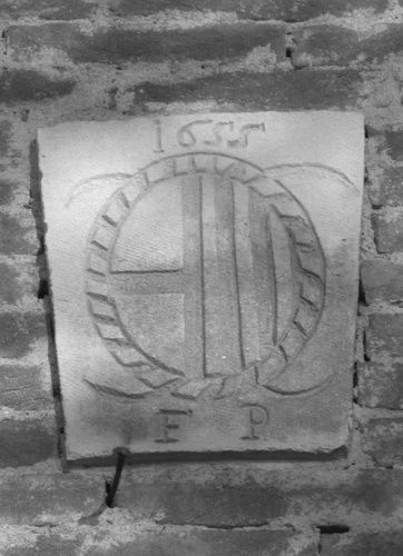 - Descrizione: Ad est, un porticato con architrave ligneo sorretto da pilastri rustici, il primo dei quali reca uno stemma gentilizio con il millesimo 1655 e le iniziali "FP".
