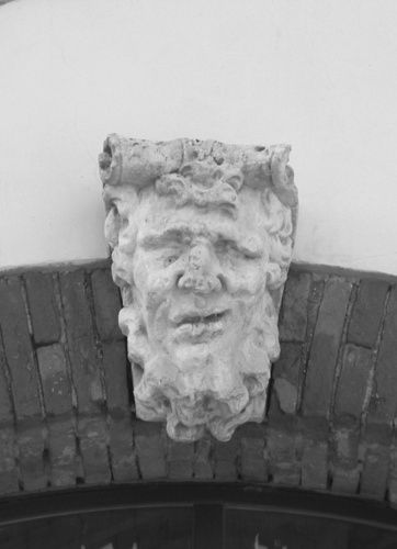 - Descrizione: Fronte est della barchessa: arcata centinata, profilata da ghiera in mattoni con mascherone in chiave di volta, probabilmente elemento superstite di un edificio tardo-seicentesco preesistente.