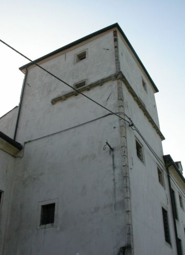 - Osservazioni: Alta quattro piani, a pianta quadrata, è rivestita nello zoccolo da pietre quadre; si conserva uno spigolo con bugne in pietra e cornice su mensole lapidee.