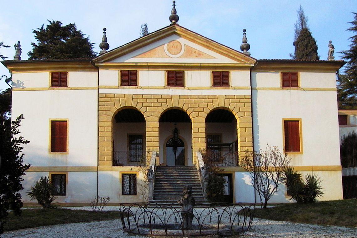- Descrizione: Balaustra in pietra ai lati della scalinata centrale; parapetti in ferro battuto chiudono i due fornici laterali della loggia.