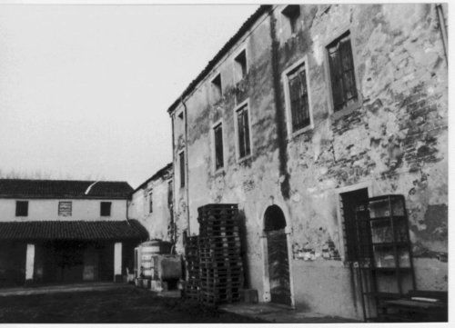 - Descrizione: Sul fronte sud: portale centrale centinato (con conci d'imposta e stemma in chiave d'arco) e finestre laterali architravate.