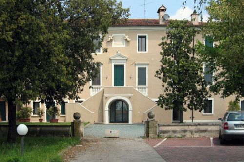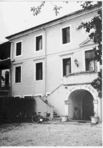 - Descrizione: Sopra la porta di ingresso, una lapide sorretta da due putti testimonia il restauro del 1699 da parte di Giuseppe Checato.