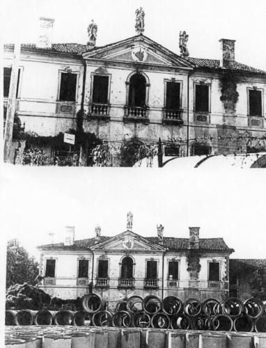 - Osservazioni: La villa si eleva su due piani, con il fianco a sud-ovest direttamente sulla strada e la facciata rivolta a sud-est, coronata da un timpano ornato da statue acroteriali. Gli interni sono stati manomessi per suddividere diversamente gli spazi e il salone del piano nobile, con soffitto a padiglione, è stato diviso a metà. Sul fianco a nord-est del corpo padronale si innesta la foresteria e poi, sempre sullo stesso asse, la barchessa, con portico architravato e due archi ribassati di accesso sulle estremità laterali.