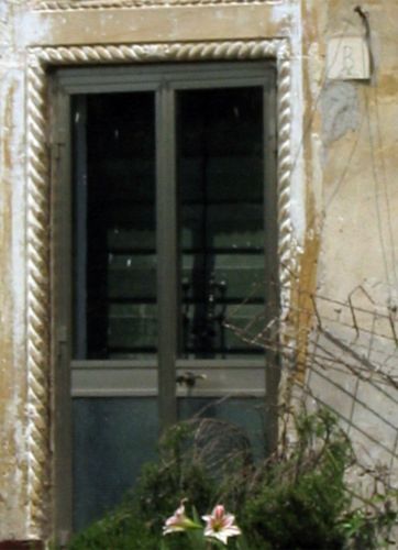 - Descrizione: Cornici con motivo a torciglione ornano la porta di ingresso e due finestre sul prospetto principale.