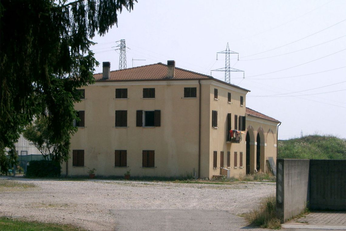 Piccolo complesso rurale composto dal corpo abitativo e da due edifici rustici ad esso addossati: sul fianco ovest, una barchessa con alto portico di tre arcate su pilastri (con ghiera in mattoni e conci d'imposta ed in chiave d'arco lapidei); sul fronte nord, un portico aggettante con copertura ad una falda su colonne in mattoni. Attualmente il complesso risulta inglobato nella recente zona artigianale.Specifiche: