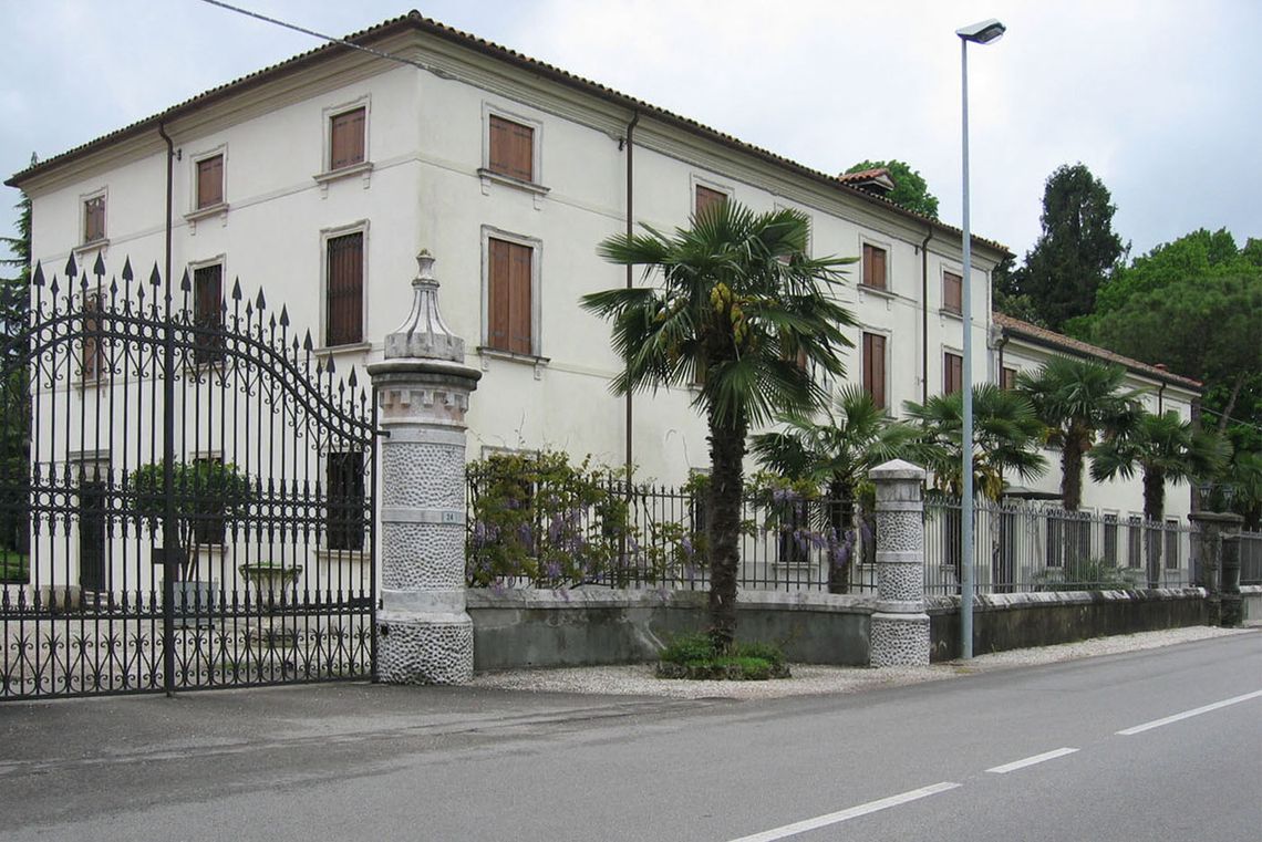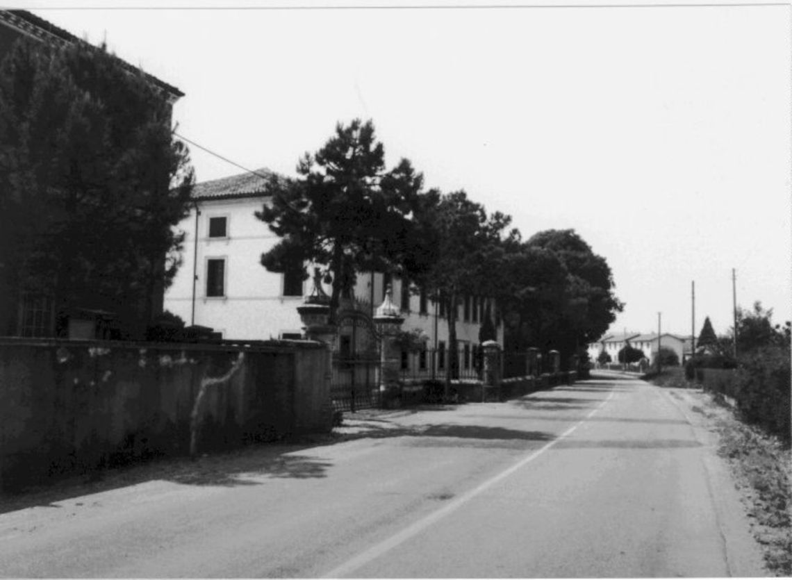 Il complesso è ubicato all'esterno del centro abitato e si attesta con il fronte nord in prossimità della sede stradale, lungo cui corre uno stretto giardino ed una importante recinzione tardo-ottocentesca: al corpo dominicale, di significative proporzioni, si congiunge un'ala più bassa, entrambe con il fronte principale rivolto a sud, dove si estende un giardino romantico ricco di essenze esotiche.Specifiche: