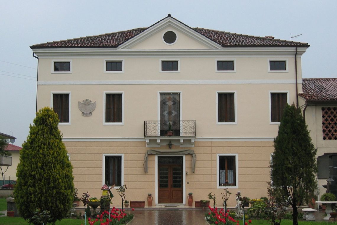Il complesso sorge ai limiti dell'abitato in un lotto d'angolo tra due strade e presenta una morfologia ad "L"; sulla testata occidentale si erge il corpo padronale, orientato a sud e affiancato da un annesso rustico; perpendicolarmente sul lato orientale sorge un altro edificio, in origine una barchessa, rimaneggiato nel XX secolo.Specifiche: