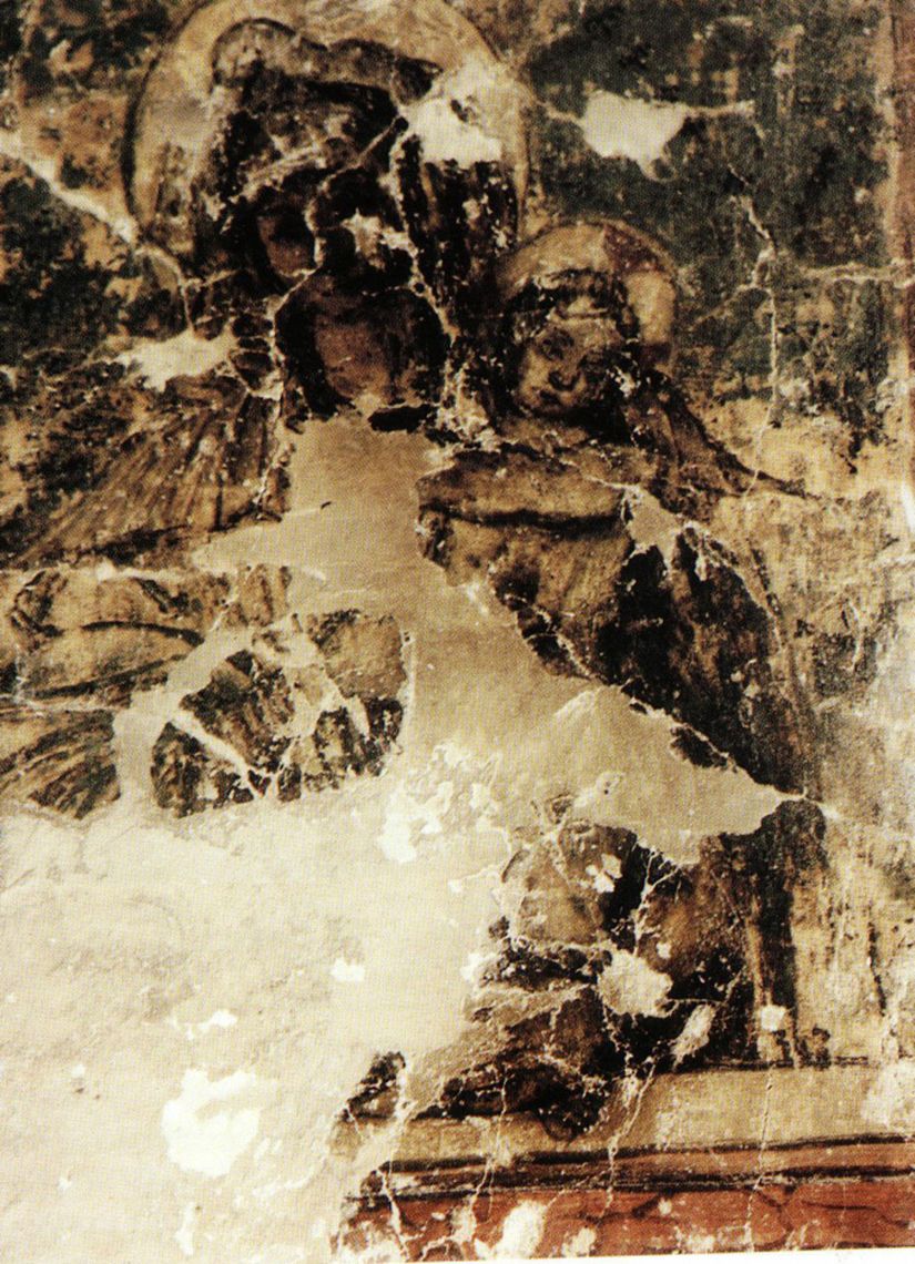 - Descrizione: In una stanza al piano terreno del corpo padronale si trovano i resti di un affresco in cui gli studiosi hanno riconosciuto una Madonna con bambino; medaglioni con teste di imperatori romani, motivi antropomorfi e fitomorfi.