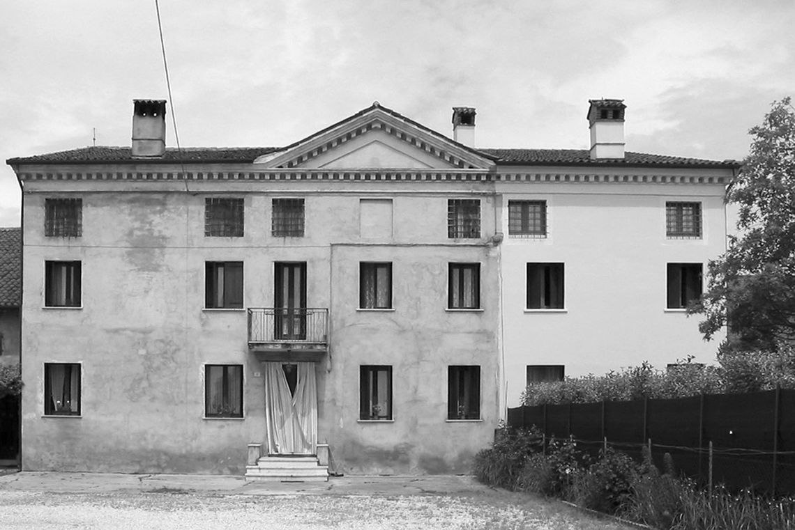 La villa, oggi connotata solo dal cornicione a fitti dentelli su cui si imposta al centro un timpano triangolare, è affiancata da un rustico porticato che gira ad "L" chiudendo il versante occidentale della corte antistante; ad oriente una barchessa con portico architravato chiude l'altro lato. Complesso pesantemente alterato e frazionato, anche in tempi molto recenti.Elementi Decorativi: