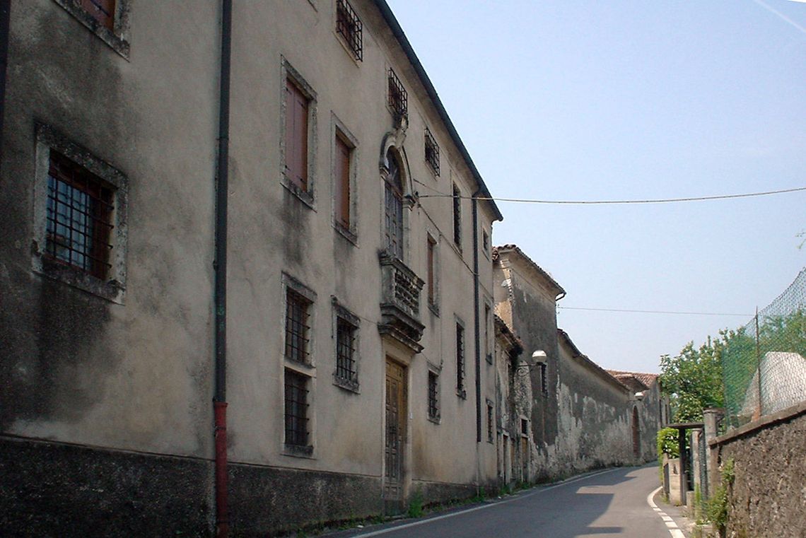 - Osservazioni: Ampio volume a piante rettangolare, si eleva su due piani e sottotetto sul versante nord, mentre a sud recupera un piano per il dislivello del terreno. Il fronte nord è caratterizzato da un'alta monofora centinata, con cornice modanata in pietra e balaustra a fitti birilli modanati, che occupa il centro della facciata; in chiave d'arco è incastonato lo stemma dei Gonzati con incisa la data 1774. Ai lati, si dispongono finestre rettangolari incorniciate secondo una distribuzione.