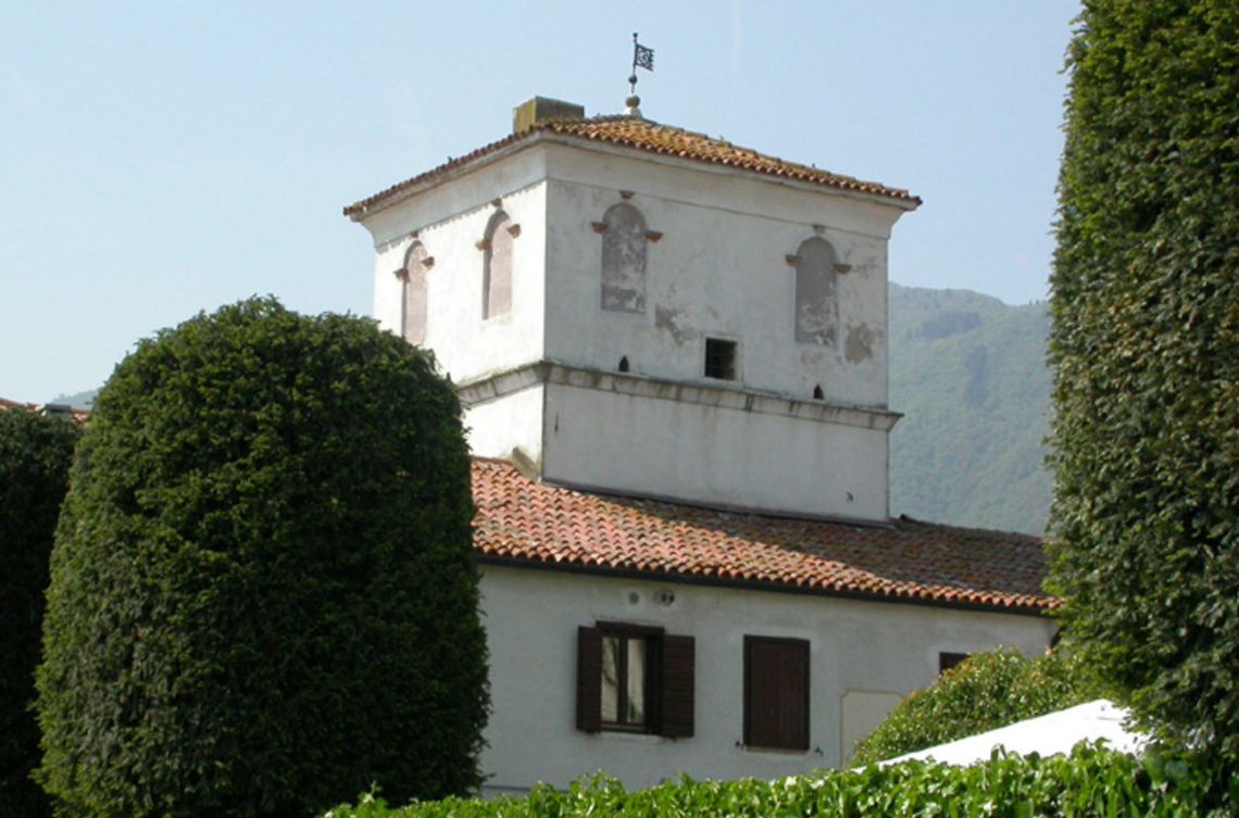Il complesso si trova in aperta campagna, al confine con i comuni di Santorso, Piovene e Zanè, ed è articolato nella villa, due lunghe barchesse, la torre colombara e la chiesa che definiscono, con la loro disposizione a "C", i lati della corte. Il corpo padronale è caratterizzato dal settore centrale sottolineato da un frontone triangolare, il prospetto interno presenta le fasce delle finestre che segnano orizzontalmente i piani. All'interno vi sono tre sale che distribuiscono alle altre stanze della villa. Sui fianchi si innestano i corpi delle barchesse porticate verso la corte interna e con un balcone in aggetto sulla strada.Specifiche: