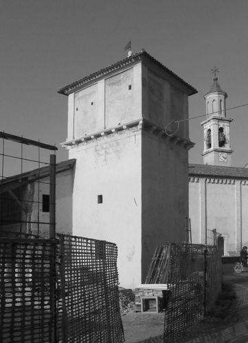 - Descrizione: Affreschi sulla torre colombara che rappresentano paesaggi in cornici color ocra.