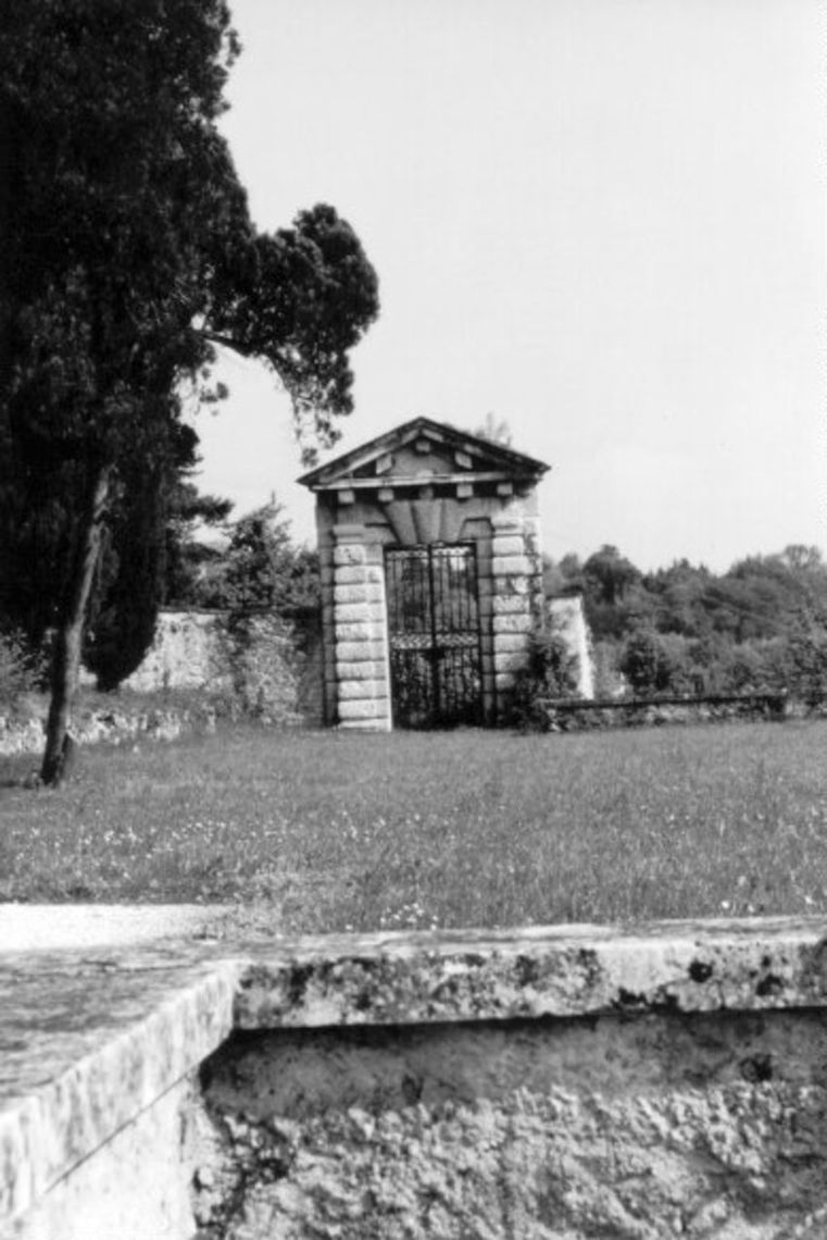 - Osservazioni: L'ingresso al giardino è sottolineato da un portale a grosse bugne, con pilastri che reggono un pesante frontone triangolare, progettato da Ottone Calderari.