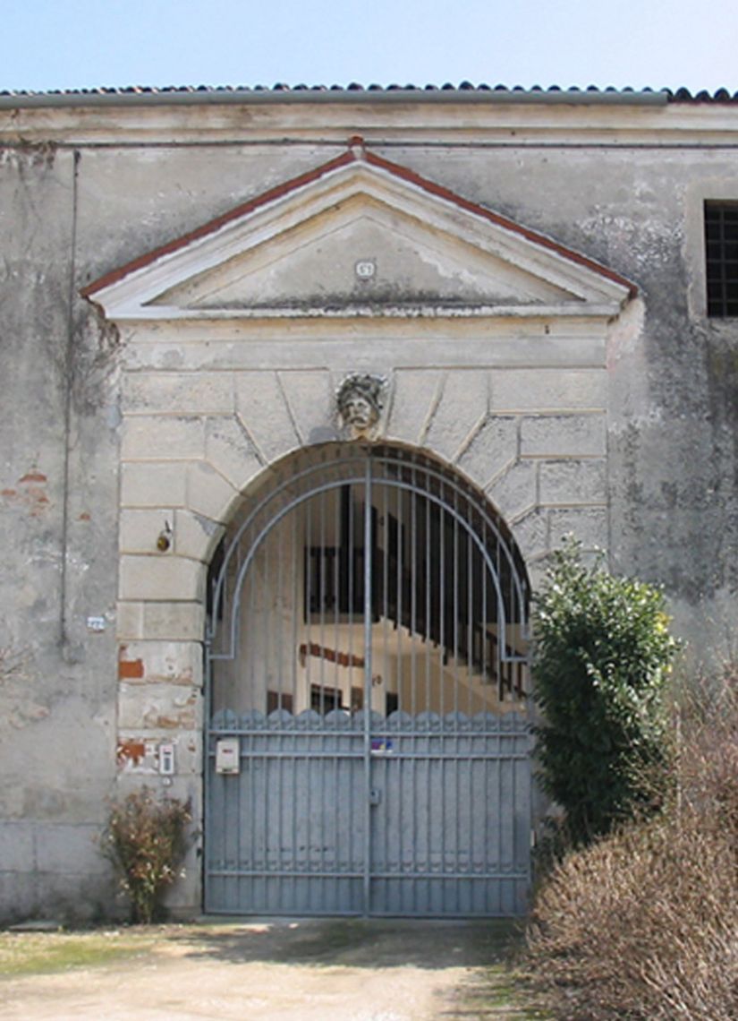 - Descrizione: All'estremo dell'ala occidentale, si apre un proporzionato portale, centinato e bugnato, con una testa d'Ercole in chiave di volta, coronato da un frontone triangolare; esso funge da ingresso carraio alla corte interna.