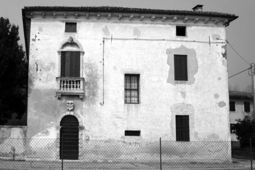 - Osservazioni: A due piani più sottotetto, coronato da cornicione a mensoline, presenta il fronte sud caratterizzato da un portico a tre arcate al piano terreno e una soprastante loggia, pure a tre arcate, chiusa negli anni settanta del XX secolo. La facciata orientale presenta al piano terra un portale centinato e bugnato coronato da stemma lapideo che immette direttamente nel portico; in asse, al piano superiore, un elegante foro centinato e munito di balaustra lapidea, che un tempo si apriva sulla loggia; fori recenti sul lato.