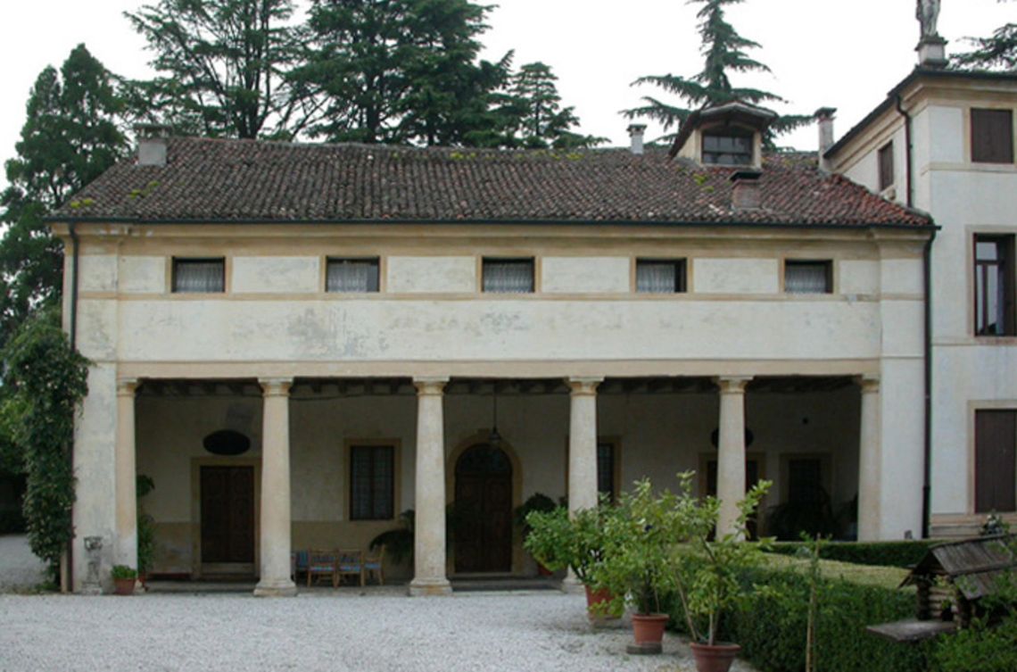 Il complesso, isolato in zona collinare, si compone di due nuclei edilizi disposti sui lati contigui di un ampio giardino: a ovest, il corpo della villa rinserrata tra un'elegante barchessa porticata a ovest e un bassa adiacenza ad est; a sud, un corpo rustico con numerose arcate oggi tamponate e, in testata, l'oratorio con facciata sulla strada, in prossimità della cancellata d'ingresso.Specifiche: