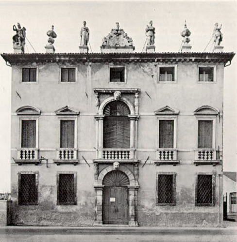- Descrizione: Quattro cariatidi su semilesene sorreggono le cornici che sormontano gli archi del portale di ingresso al pianterreno e della portafinestra al piano nobile.