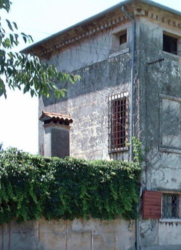 - Osservazioni: A pianta longitudinale, il volume si eleva su due piani e sottotetto ed è concluso da una cornice continua a fitti dentelli. Il fronte principale, tripartito ma leggermente asimmetrico, è caratterizzato da una finta serliana al piano nobile (con le due finestre rettangolari oggi murate) e un portale centinato d'ingresso.