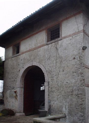 - Osservazioni: Massiccio edificio rustico, attraversato da fasce continue di pietra rossa che collegano i fori quadrati del granaio; sul fianco nord si apre un grande arco centinato con elementi in pietra.
