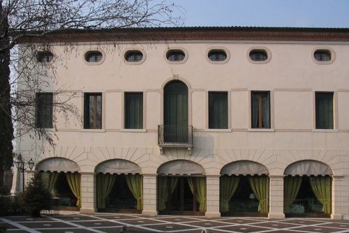 - Osservazioni: Si presenta con due fronti principali simili, probabilmente configurati in epoche successive: a nord, un fronte urbano asimmetrico ma scandito in orizzontale da due fasce marcapiano che racchiudono i fori architravati del piano nobile; due monofore centinate sull'asse d'ingresso e oculi ellittici nel sottotetto. A sud, il piano terra è aperto da un portico di cinque arcate a sesto ribassato, disegnati da finte bugne radiali.