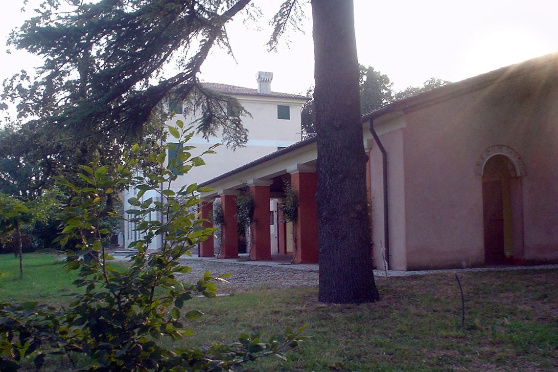 Il complesso, preceduto da un breve giardino, sorge in prossimità della sede stradale principale, verso cui prospetta con il fronte sud. Al corpo della villa, di linee neoclassiche, si affianca ad est il volume della barchessa porticata e ad ovest una casa colonica.Specifiche: