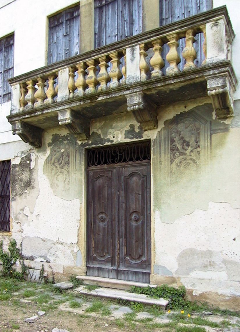 - Descrizione: Massiccia balaustra tripartita, sostenuta da quattro modiglioni lavorati, completa la triade di fori architravati posti al centro di entrambe le facciate principali.