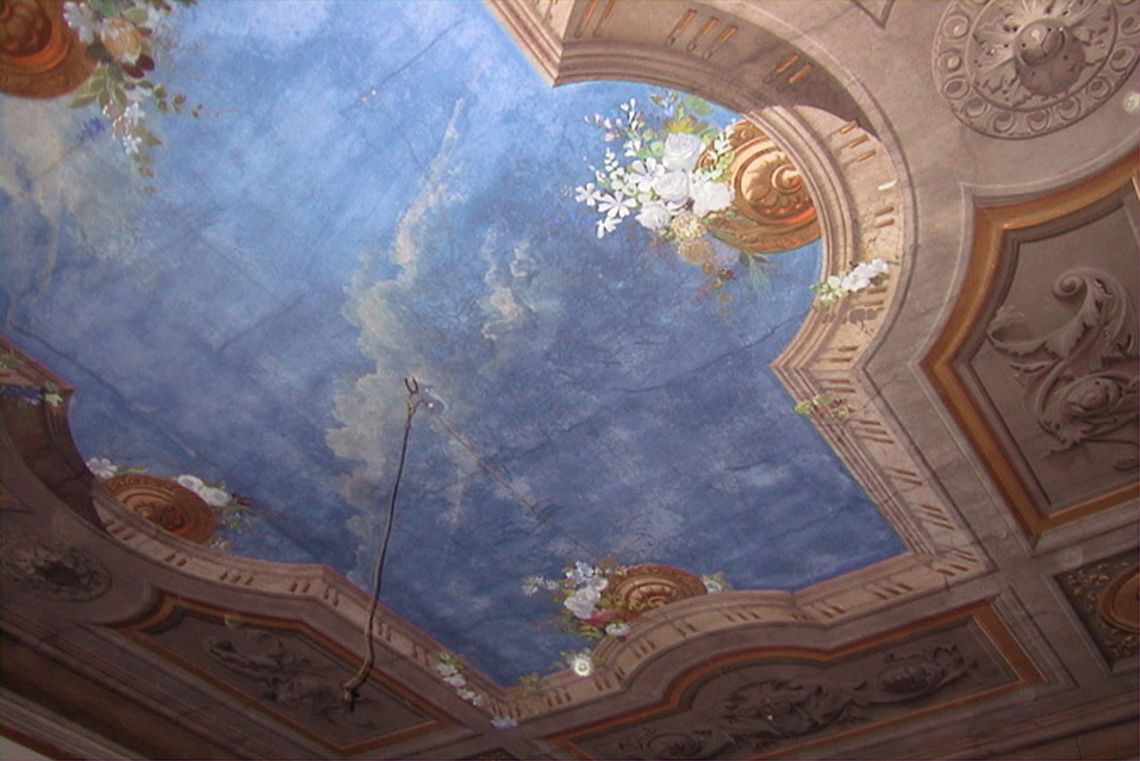 - Descrizione: All'interno: al piano terra tutti gli ambienti sono completamente decorati da affreschi a motivi floreali o neoclassici, sfondi paesaggistici e figure entro intelaiature architettoniche. Al piano nobile: decorazione del salone passante dedicata alle Arti (con volti di artisti).