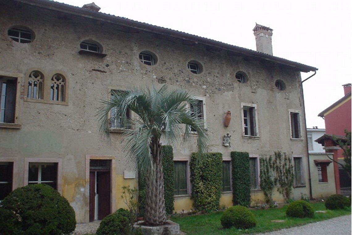 - Osservazioni: A due piani più sottotetto, privo di cornicione sottogronda, presenta il fronte sud scandito da grandi fori rettangolari incorniciati, distribuiti in modo irregolare, oculi ellittici nel sottotetto e una piccola bifora "neogotica" nel settore orientale della facciata.