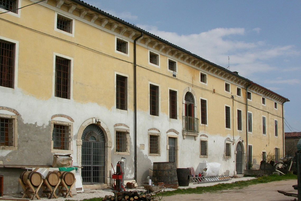 - Osservazioni: Volume a notevole sviluppo longitudinale si eleva su due piani e sottotetto ed è concluso da una cornice in pietra e fitte mensoline. L'estesa facciata rivolta a occidente mostra una sequenza di semplici finestre incorniciate, in asse tra loro ma poste ad intervalli variabili, a conferma che l'edificio venne ampliato in momenti successivi. Spiccano tre fori centinati: due ampi portali al piano terra e una monofora al primo piano con balaustra.