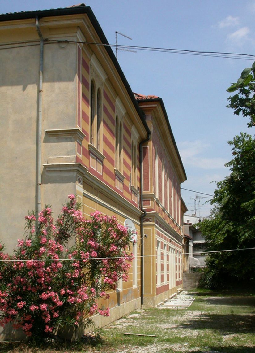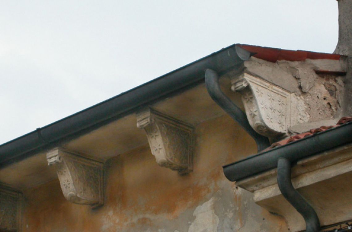 - Descrizione: Affreschi con disegni geometrici che decorano il prospetto del corpo principale.