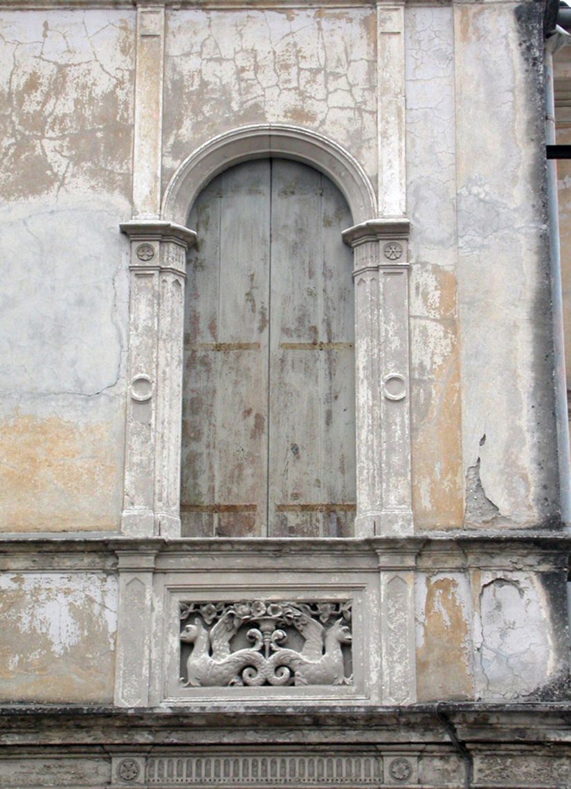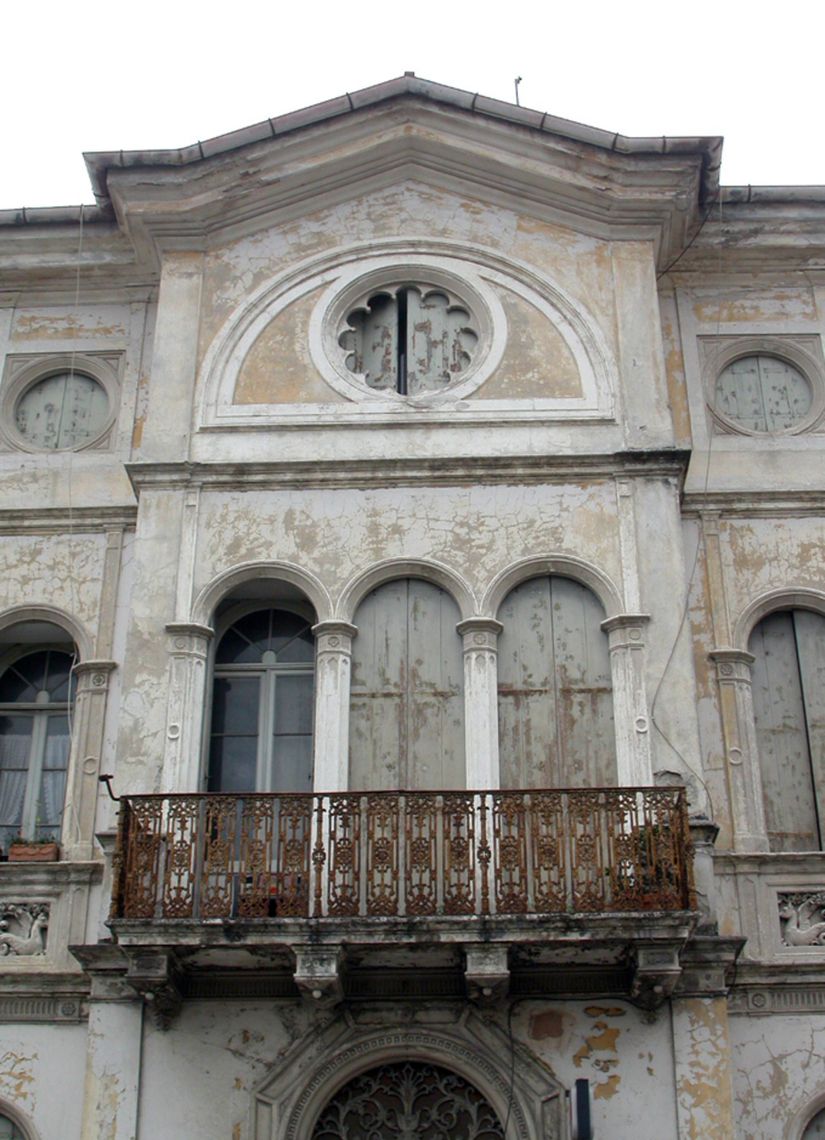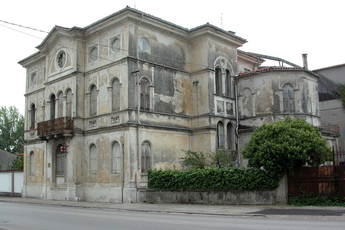 L'edificio - esempio dell'eclettismo - si colloca nei pressi del centro abitato, lungo la strada, in una zona di complessi industriali. Si sviluppa su tre piani come addizione di volumi.Specifiche: