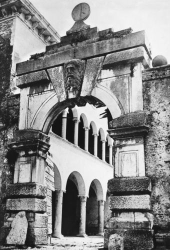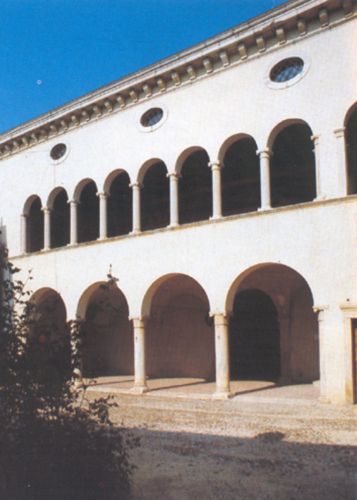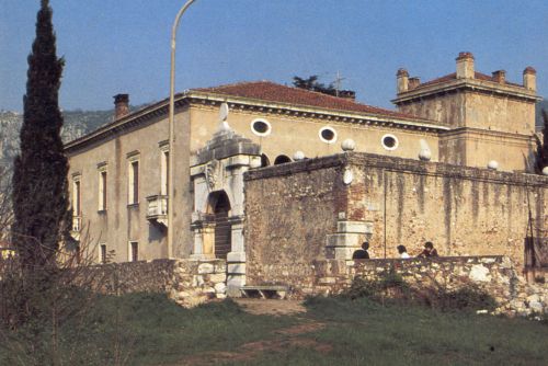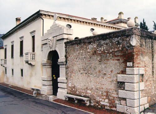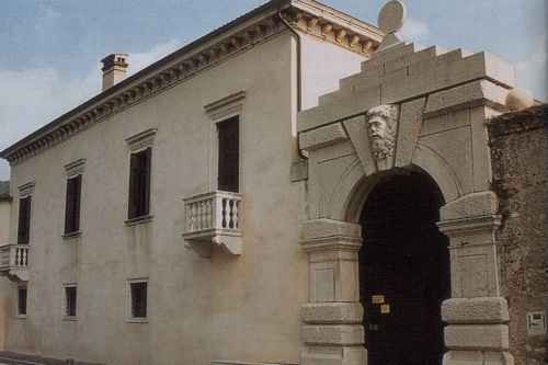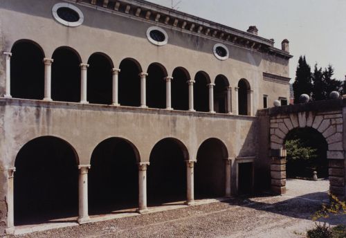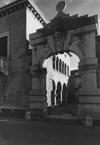 - Descrizione: ampio portale di ingresso alla villa ad arco a tutto sesto, bugnato e con una grossa testa barbuta in chiave di volta, rilevato da Luigi Trezza e minutamente descritto dal Da Persico