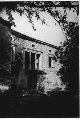 Villa a corte con due cortili. La parte rinascimentale, rivolta a sud in direzione del fiume, è costituita dal compatto corpo quadrangolare con portico a quattro arcate e una loggia a otto archi al piano nobile. Questo primo nucleo venne ampliato con il portale d'ingresso a bugne rustiche, un muro di cinta sul primo cortile ornato da grosse sfere di pietra e con la torre colombara del secondo cortile, sul quale si affaccia un edificio rustico destinato a scuderie. La parte orientale subì nel corso del Sei-Settecento ingrandimenti e trasformazioni.Specifiche: