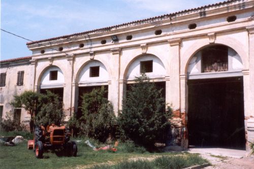 - Osservazioni: Il lato sinistro del complesso è dominato dalla presenza della bella barchessa di chiara ispirazione rinascimentale. L'edificio è infatti caratterizzato da un ordine architettonico architravato che individua quattro campate all'interno delle quali si aprono delle arcate a tutto sesto. Sulla facciata emergono cinque pilastri, terminanti con eleganti capitelli, che sostengono una trabeazione orizzontale lunga quanto tutto il corpo di fabbrica.