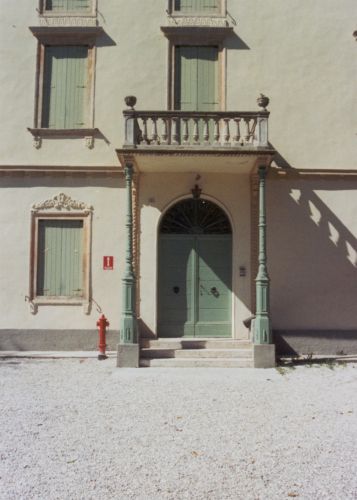 - Osservazioni: Lo sviluppo longitudinale della facciata è sottolineato nell'attacco a terra dalla contenuta fascia basamentale e dalla fascia marcapiano che suddivide il piano terra da quello superiore, oltre che dal parapetto a balaustrini che chiude la parte sommitale della facciata e che ne delimita la copertura piana, il quale poggia su un profondo cornicione di gronda sorretto da mensole con profilo a voluta. Il prospetto risulta delimitato alle due estremità da una pesante fascia lapidea a bugnato.