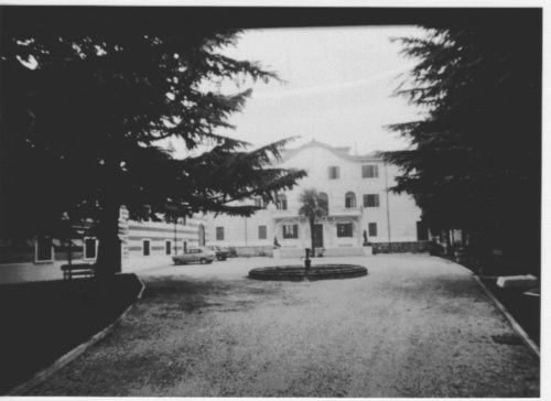 - Osservazioni: A pianta rettangolare si eleva di tre piani. Si presenta come un massiccio parallelepipedo con una sorta di timpano curvato che caratterizza la parte centrale della facciata principale e lungo il quale corre senza interruzioni la cornice di gronda. Il prospetto presenta una decorazione a bugnato.
