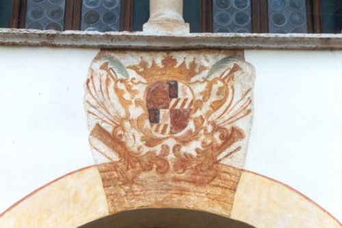 - Descrizione: Stemmi affrescati e iscrizioni a memoria degli ospiti della famiglia Giusti. Il 12 maggio 1649 Maria Anna, figlia dell'imperatore d'Austria, il primo febbraio 1652 l'arciduca d'Austria Ferdinando Carlo con la consorte Anna e il fratello, il 29 maggio 1682 Enrichetta Aldfida, moglie del duca di Baviera, il 18 novembre 1688 la regina Cristina Adulfa (Franzosi, 1960).
