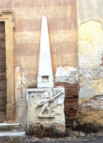 - Descrizione: All'inizio del Novecento, nel terreno di ambito della villa, fu dissotterrata un'ara con sculture di putti e di strumenti di sacrifici che serviva un tempo da puteale: oggi si trova, segata in due pezzi, ai lati della porta d'ingresso della cappella dedicata a San Giuseppe.